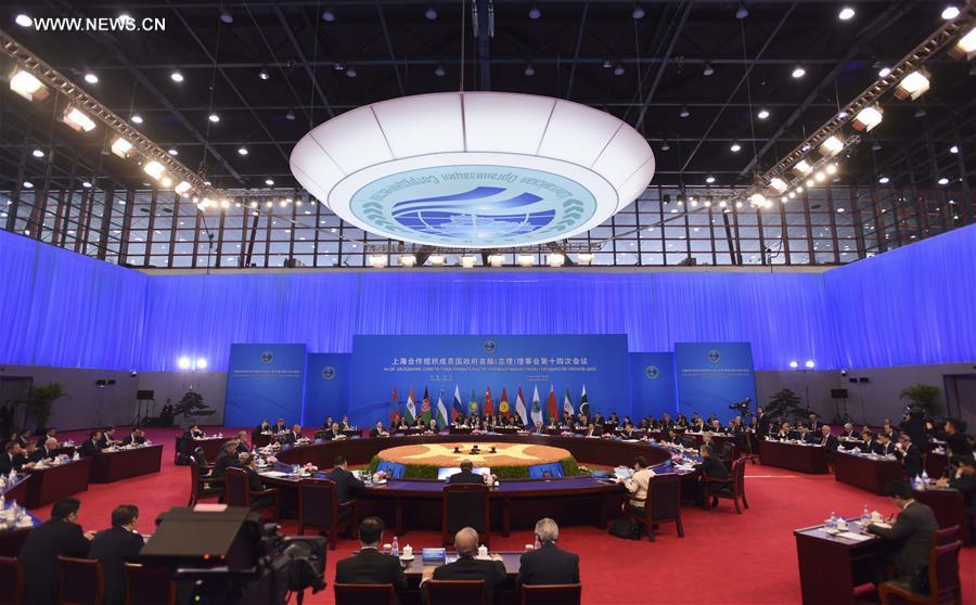 Chinese Premier Li Keqiang (5th R F) poses for a photo with other participants of the 14th prime ministers' meeting of the Shanghai Cooperation Organization (SCO) in Zhengzhou, capital of central China's Henan Province, Dec. 15, 2015. The 14th SCO prime ministers' meeting was held in Zhengzhou on Tuesday. (Photo: Xinhua/Wang Ye)