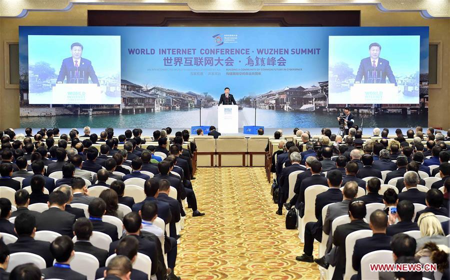 Chinese President Xi Jinping delivers a keynote speech at the opening ceremony of the Second World Internet Conference in Wuzhen Town, east China's Zhejiang Province, Dec. 16, 2015. (Photo: Xinhua/Li Tao)
