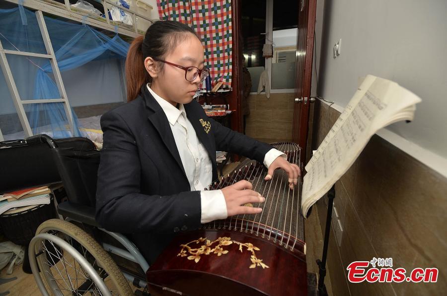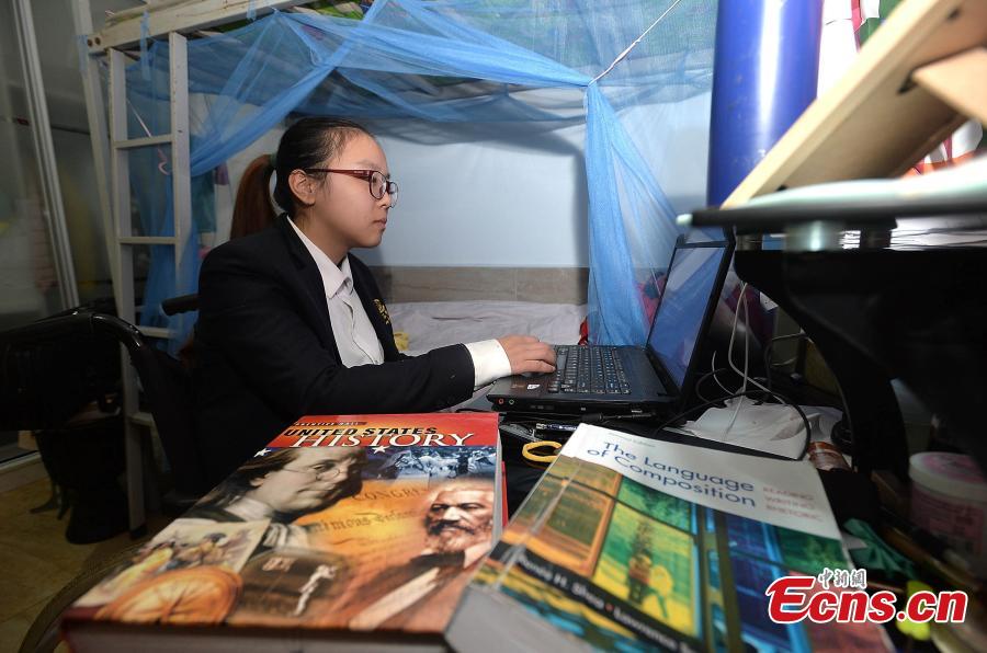 Huang Meihua, a 18-year- old girl who lost both legs in the devastating earthquake that hit southwest China in 2008 practices yoga at home in Chengdu, Sichuan province on December 16,2015. Currently Huang is in her last year of high school, where she's learning English, taking the SATs and hoping to attend college in Canada. Huang plans to go to Canada in February for a pilot certification provided by a Canadian aviation academy. (Photo/CFP)