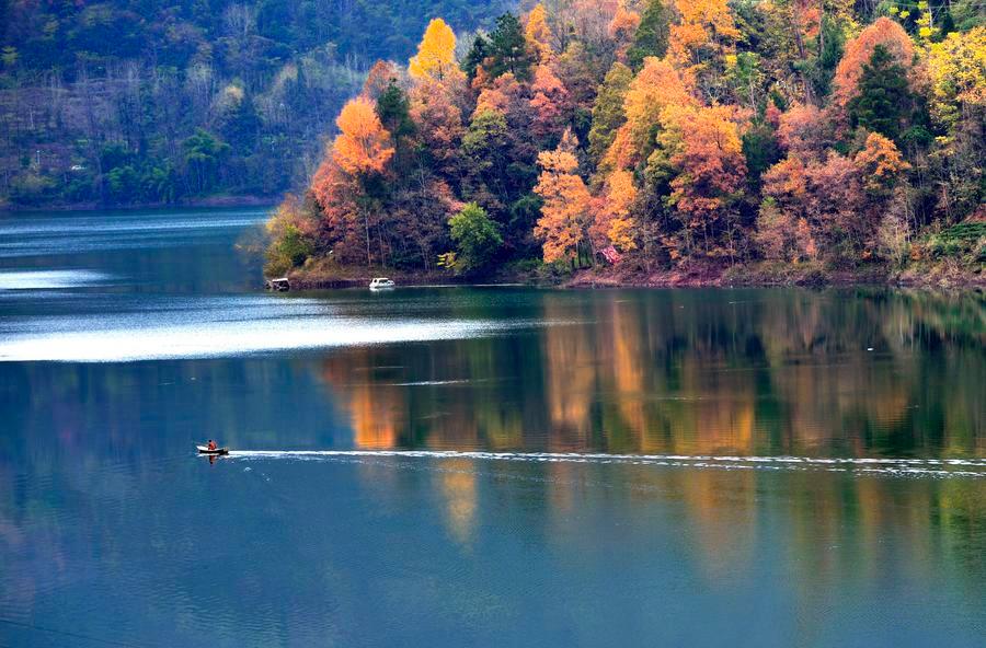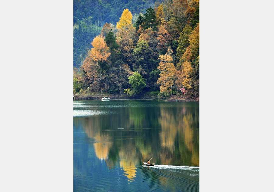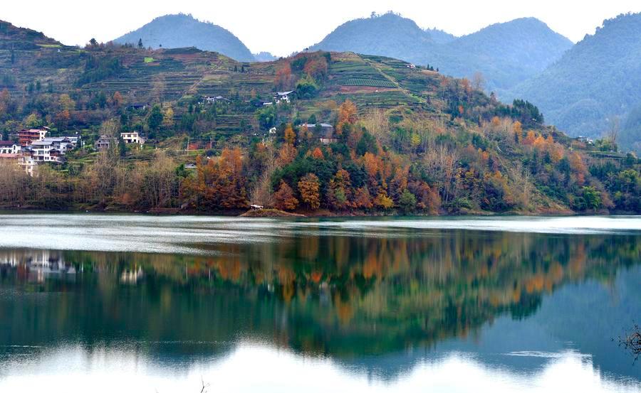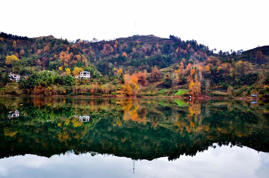 A view of Shuanglong Lake in Xuanen county, Hubei province, December 15, 2015. Located in the Western Mountainous area of the province, Shuanglong lake is as transparent as a mirror, reflecting the colorful images of forests and courtyard houses. The tranquil beauty is picturesque and poetic, a unique pastoral scenery in harsh winter. (Photo/Xinhua)