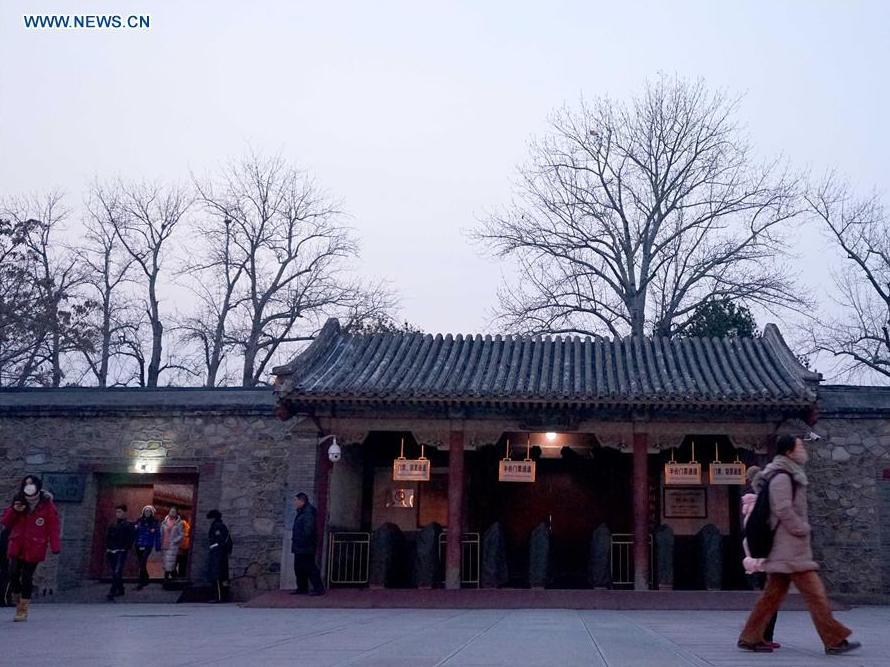 Tourists walk out of the Summer Palace in Beijing, capital of China, Dec. 19, 2015. Beijing issued its second red alert for air pollution on Friday. The red alert, the most serious level, will last from 7 a.m. Saturday to 12 p.m. Tuesday. (Photo: Xinhua/Chen Jianli)
