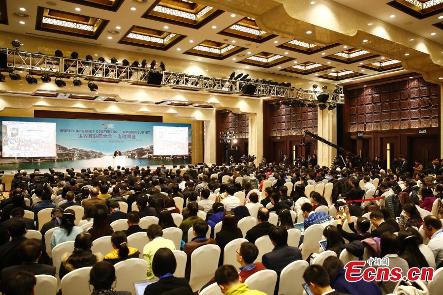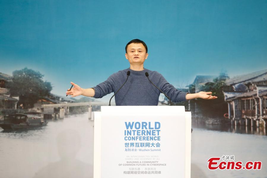 Ma Yun, founder and chairman of China's e-commerce giant Alibaba, addresses the closing ceremony of 2015 World Internet Conference in Wuzhen, east China's Zhejiang Province, Dec. 18, 2015. (CNS photo/Sheng Jiapeng)