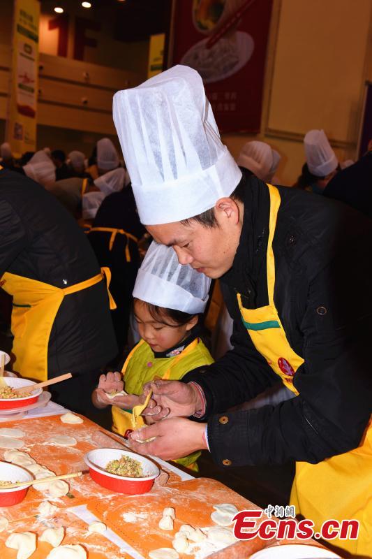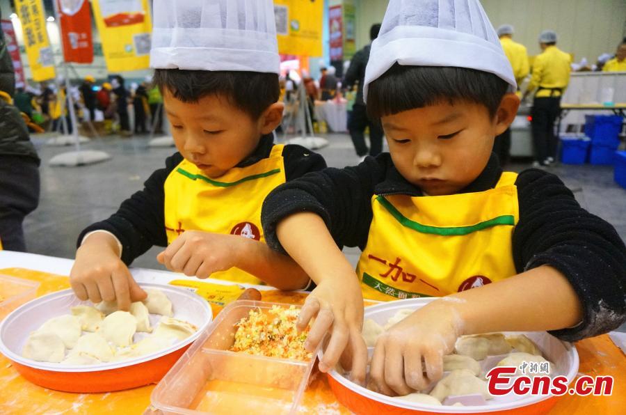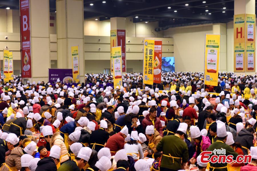 Participants make dumplings to set a world record at the International Convention Center in Zhengzhou city, Central China’s Henan Province, Dec. 20, 2015. Guinness World Records verified that 6,334 participants broke the previous record for the largest cookery lesson and “the largest number of people making dumplings simultaneously” set by 5,448 people. Organizers said the activity aimed to promote traditional Chinese culture. Participants aged from 4 to over 70. (Photo China News ServiceZhou Xiaoyun)