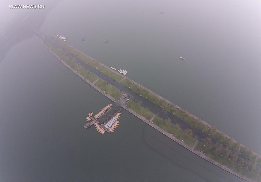 Photo taken on Dec. 23, 2015 shows Donggang CBD in smog in Dalian, northeast China's Liaoning Province. (Xinhua/Wang Hua)