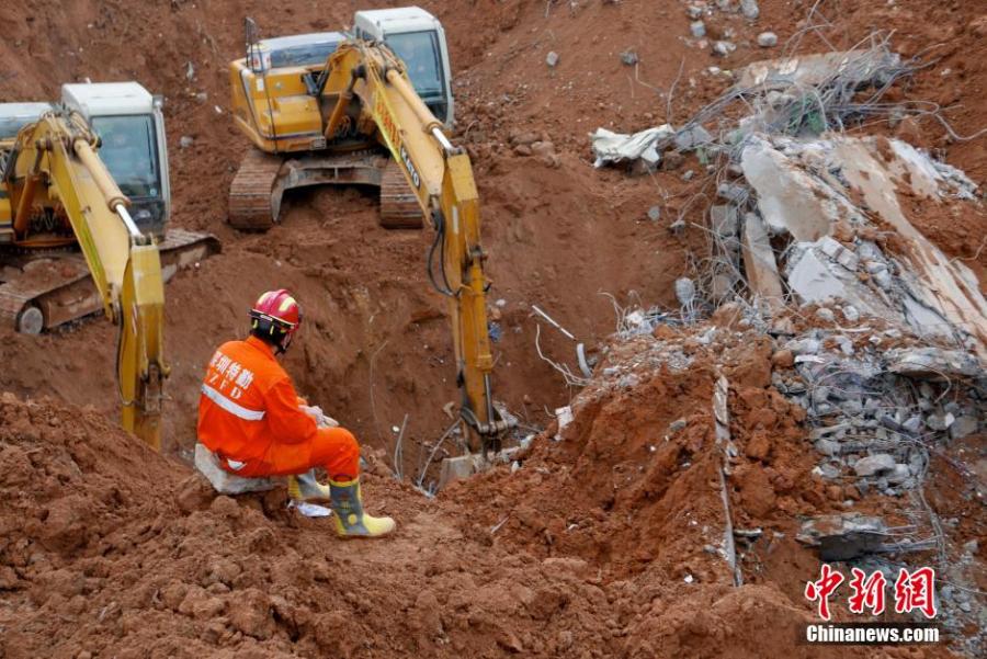 Rescuers search for survivors at the site of a landslide in Shenzhen, South China's Guangdong Province, Dec. 23, 2015. Over 4,600 employees from 90 companies were affected by the deadly landslide at an industrial park. (Photo: China News Service/ Chen Wen)