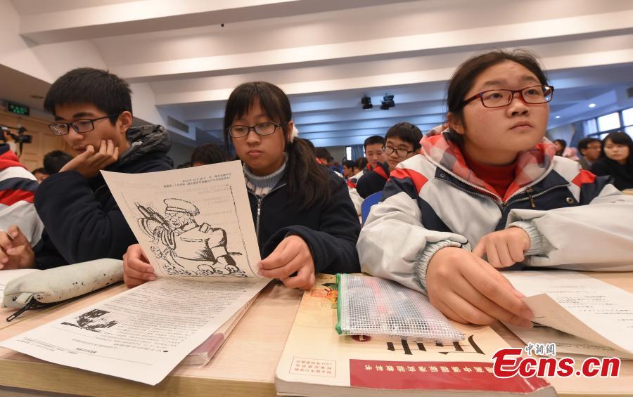 A lesson of history is jointly instructed by Chinese and Japanese teachers for first-year students in Jinling High School in Nanjing City, the Capital of East China’s Jiangsu Province. The lesson discussed topics related to the War of Chinese People's Resistance against Japanese Aggression and encouraged students to share their prospects of Sino-Japan relations. This marked the first time for Chinese and Japanese teachers to teach history together in Nanjing, where more than 300,000 Chinese soldiers and civilians were murdered and about 20,000 women were raped after the city was captured by Japanese troops during WWII. (Photo/IC)