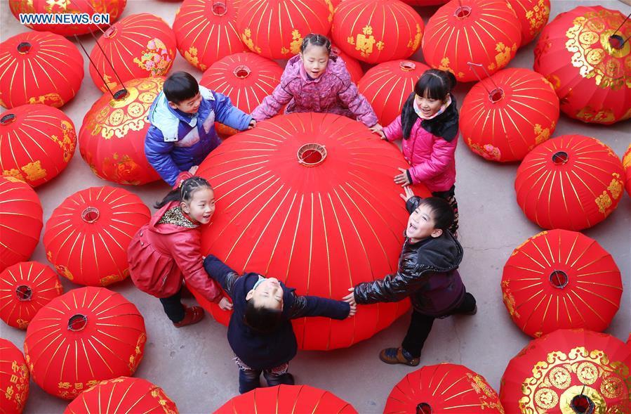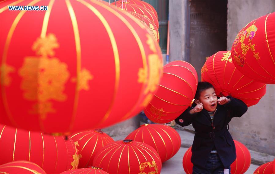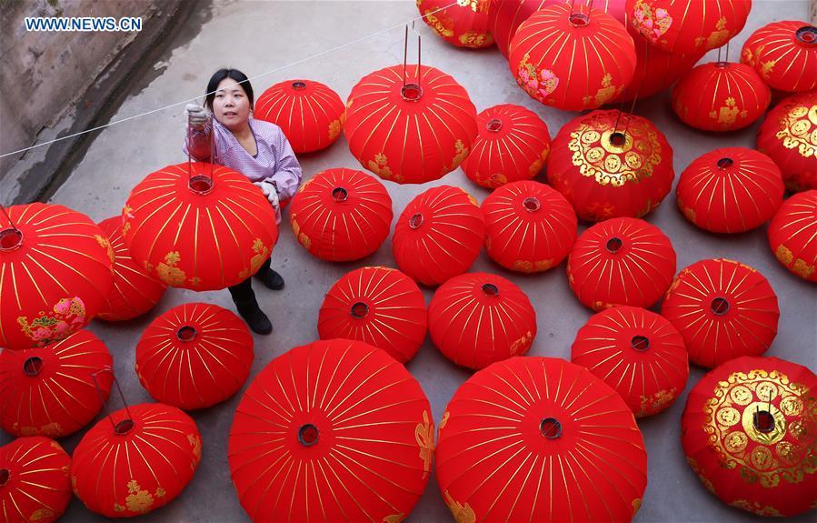 A villager airs the newly made lantern in Donghuafeng Village of Wuzhi County, central China's Henan Province, Dec. 30, 2015. Local villagers in recent days were busy in making red lanterns to greet the upcoming new year. (Photo: Xinhua/Feng Xiaomin)
