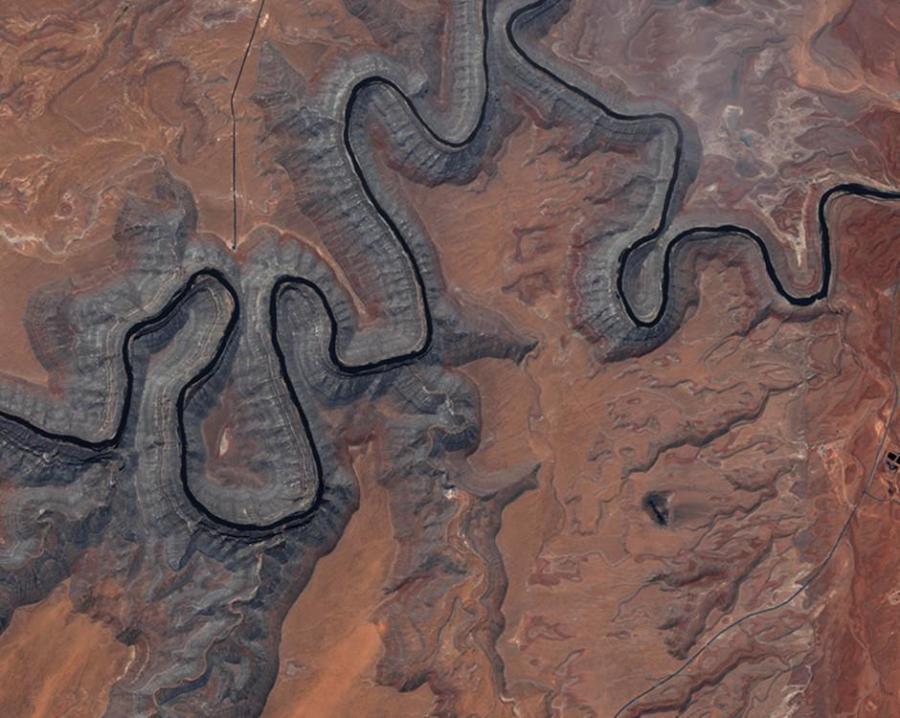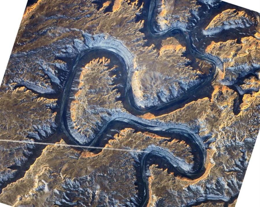 Letter A - An astronaut captured this image of Utah's Green River doubling back on itself, a feature known as Bowknot Bend from the International Space Station on January 22, 2014. (Photo provided to China News Service)