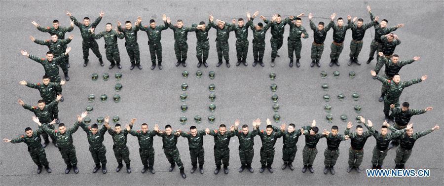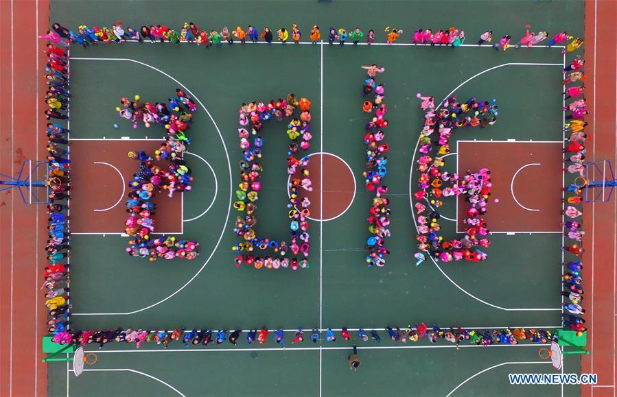Soldiers of Armed Police Force form a pattern of 2016 to welcome the coming New Year in Nanning, capital of southwest China's Guangxi Zhuang Autonomous Region, Dec. 30, 2015. (Photo: Xinhua/Wang Yu)