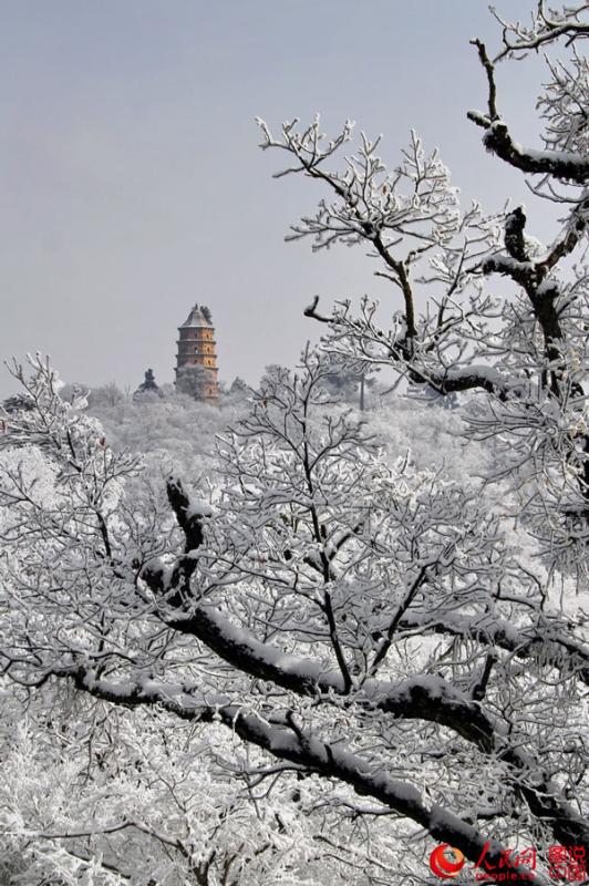 Photo shows the snow scenery at Kongtong Mountain. Kongtong Mountains is one of the sacred mountains of Taoism, located in Pingliang City, northwest China's Gansu Province. (Photo/People's Daily Online)