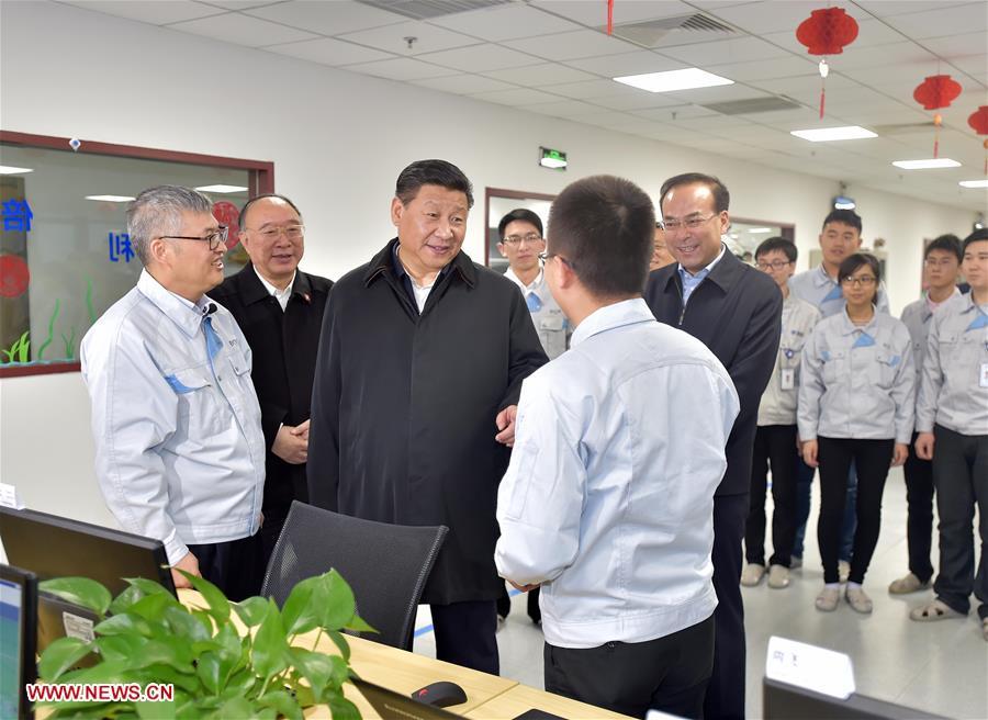 Chinese President Xi Jinping (2nd R F) talks with workers during his visit to Guoyuan Port in southwest China's Chongqing Municipality, Jan. 4, 2016. Xi made an inspection tour in Chongqing from Jan. 4 to 6. (Photo: Xinhua/Li Tao)