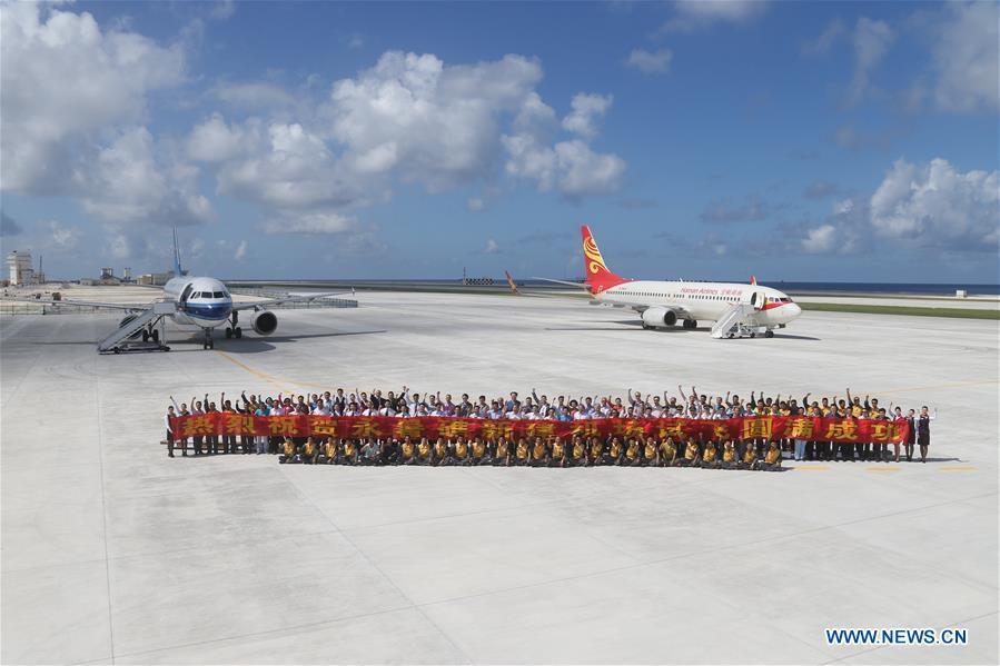 A civilian aircraft took off from the Meilan Airport of Haikou, capital of south China's Hainan Province, Jan. 6, 2016. China successfully carried out test fights of two civilian aircraft on Wednesday on a newly-built airfield in the Nansha Islands of the South China Sea. (Photo: Xinhua/Chen Yichen)