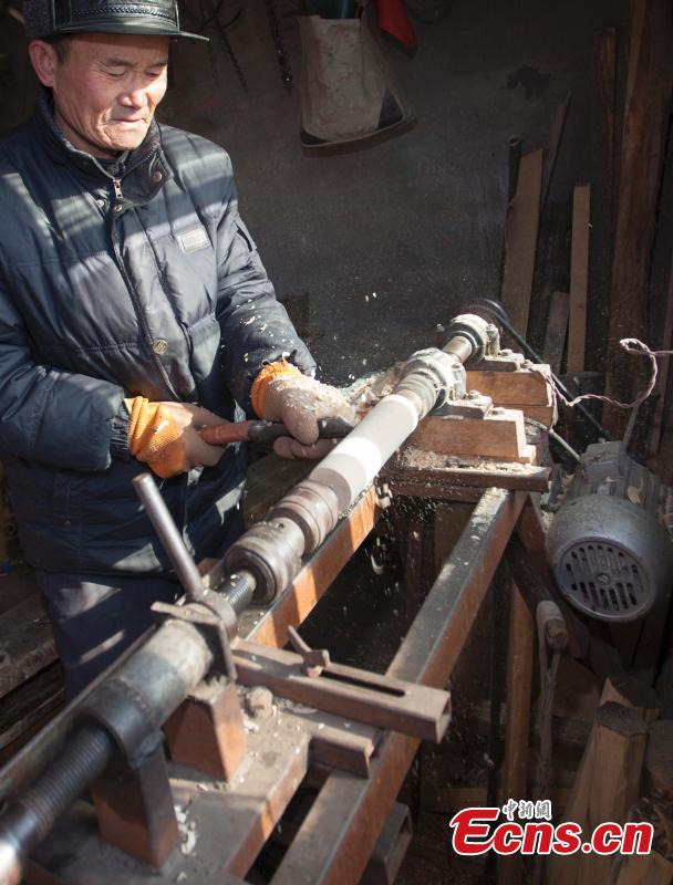 Li Jingyang shows the wooden ox he created in his home in Yongji County, Northeast China’s Jilin Province. Li took eight years to complete the work known as the “wooden ox and gliding horse”, a historical reference to a type of wooden wagon with a free-standing cargo box. The design received a national patent last year. With just an elementary education, Li has long worked as a carpenter and has a passion for creative work. He also crafts actual-sized bicycles made of wood and wheelbarrows. (Photo/IC)