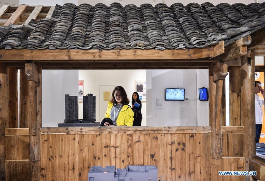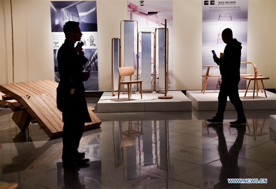Visitors pass by furniture pieces at the exhibition in Shenzhen, south China's Guangdong Province, Jan. 9, 2016. The Second China Design Exhibition and Public Art Thematic Exhibition opened here on Saturday. (Xinhua/Mao Siqian)