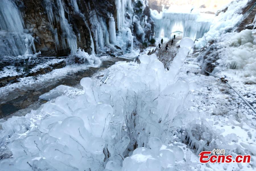 Waterfalls turn into icefalls at Xiayunling in Beijing, Jan. 9, 2016. In winter, the place turns into an ice wonderland. (Photo: China News Service/Fu Tian)