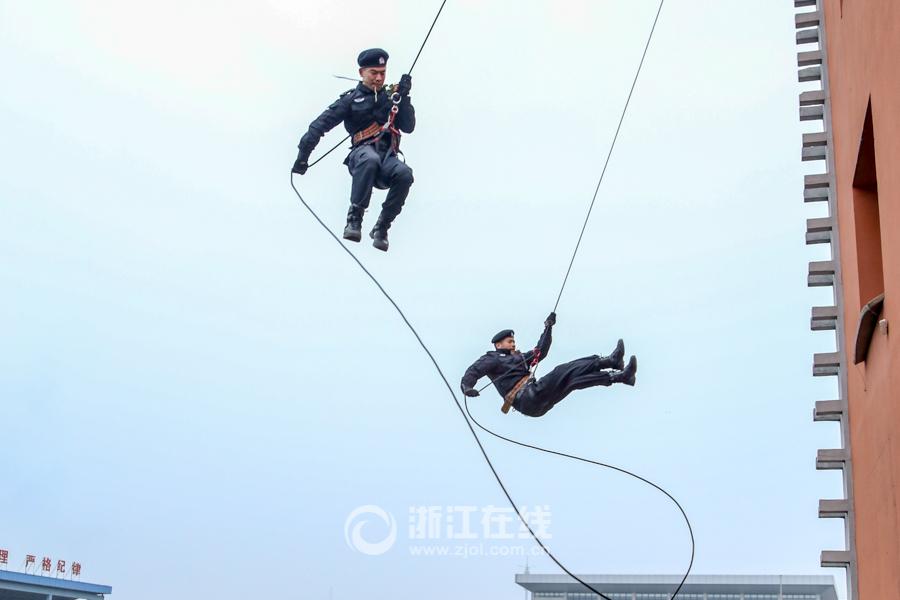 SWAT members descend down from the 4th floor. (Photo/ZJOL)