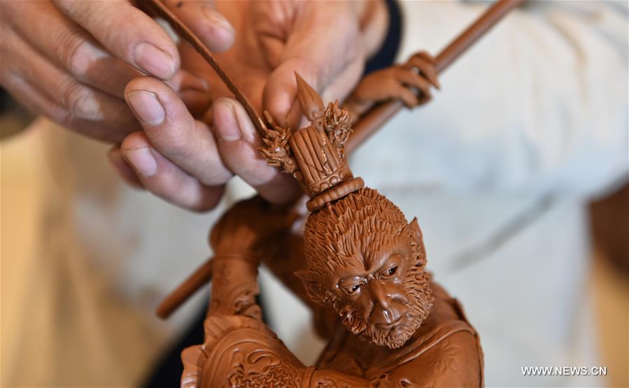 Folk artist Wang Runxin makes clay sculptures of Monkey King at his studio in Luoyang, central China's Henan Province, Jan. 17, 2016. The Chinese Lunar New Year of Monkey falls on Feb. 8 this year. (Photo: Xinhua/Huang Zhengwei)
