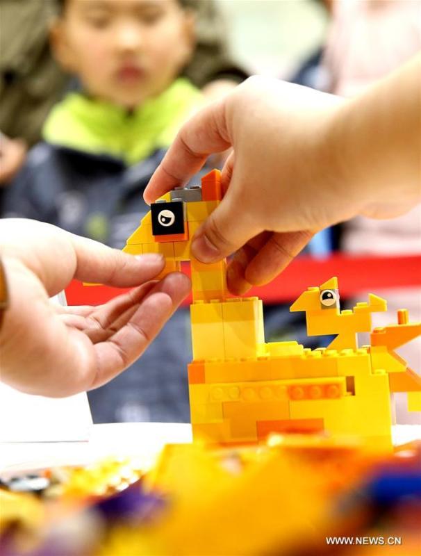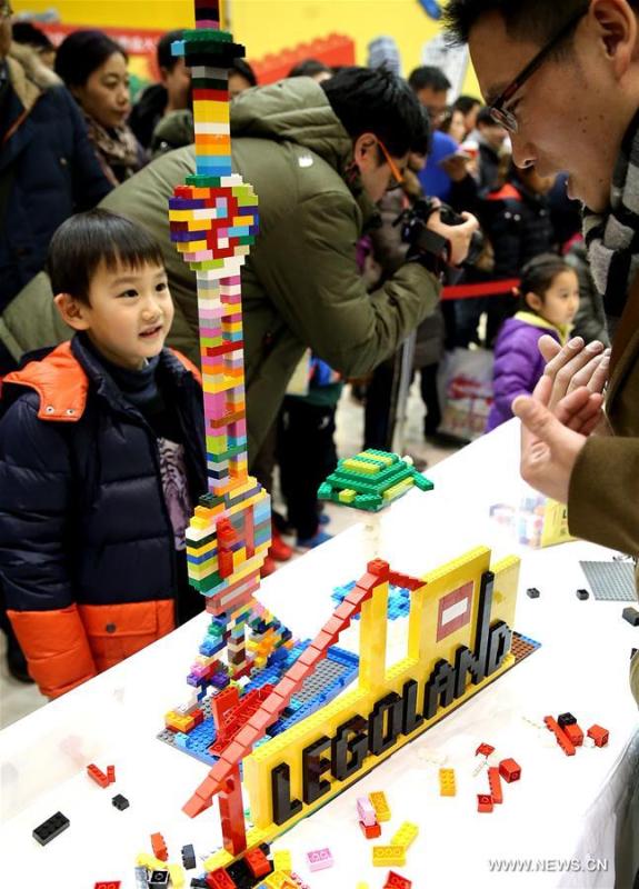 Children watch a participant competing in the LEGO Master Model Builder Competition in Shanghai, east China, Jan. 17, 2016. The competition was held at the LEGOLAND Discovery Center in Shanghai, which is expected to open in the spring of this year. It is the first LEGOLAND Discovery Center in China and also the 14th over the world. (Photo: Xinhua/Chen Fei)