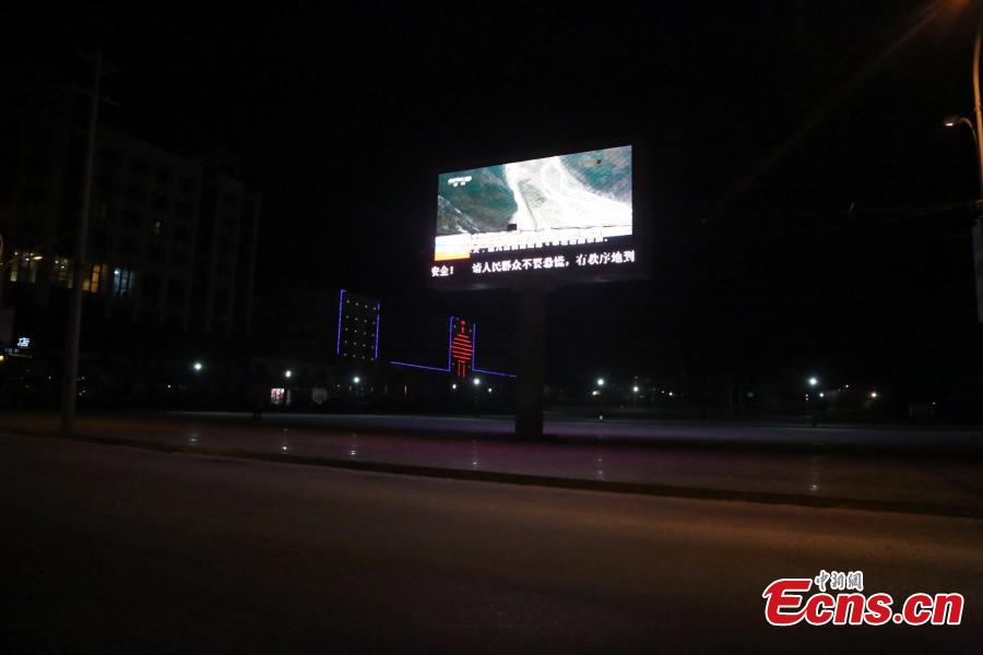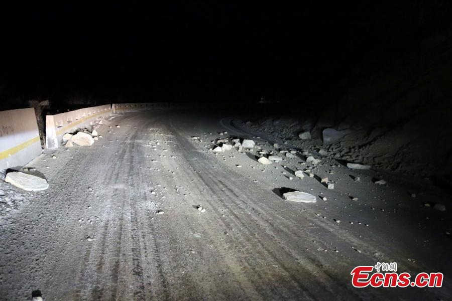 Stones are seen on the road in quake-hit Menyuan County of Haibei Tibetan Autonomous Prefecture, Northwest China's Qinghai Province, Jan. 21, 2016. A 6.4-magnitude earthquake struck the county on early Thursday morning. No casualties were reported. (Photo: China News Service/Hu Guilong)
