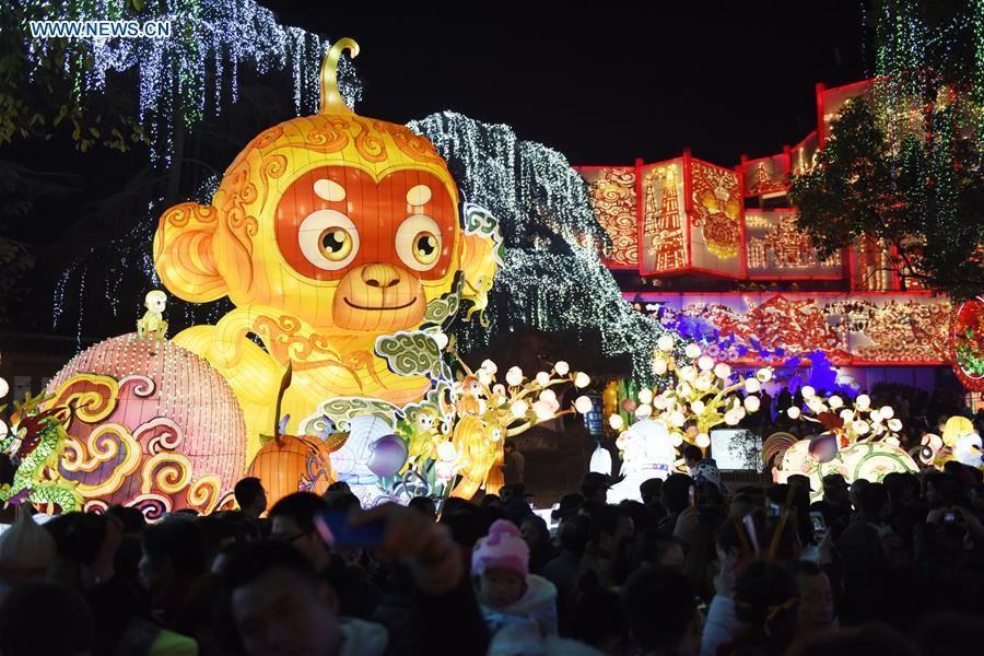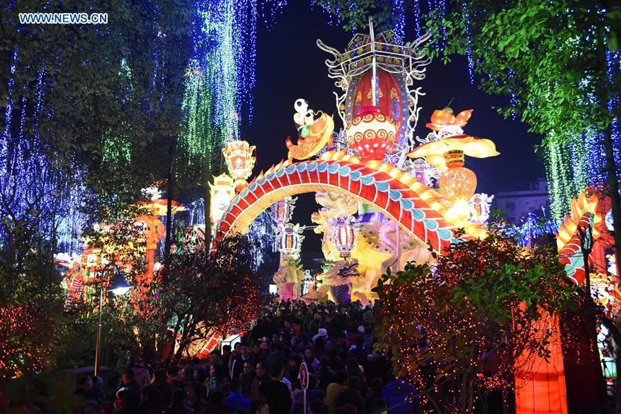 People visit the 22nd Zigong lantern show in Zigong City, the so called "Lantern Town" in southwest China's Sichuan Province, Jan. 21, 2016. The lantern show began on Thursday evening, displaying 128 large-scale and medium-sized lanterns. (Photo: Xinhua/Liu Kun)