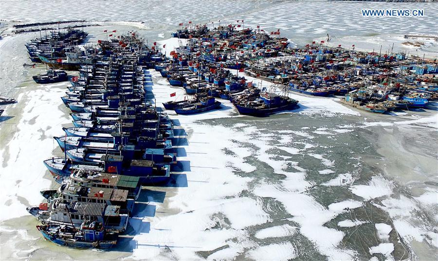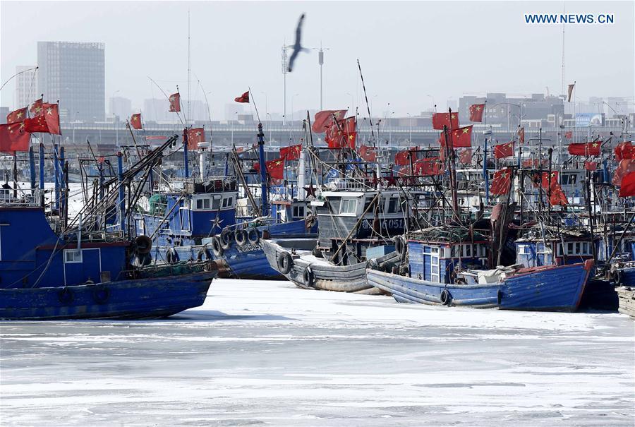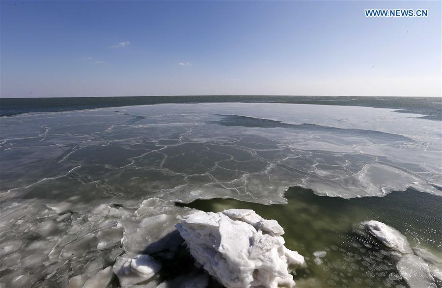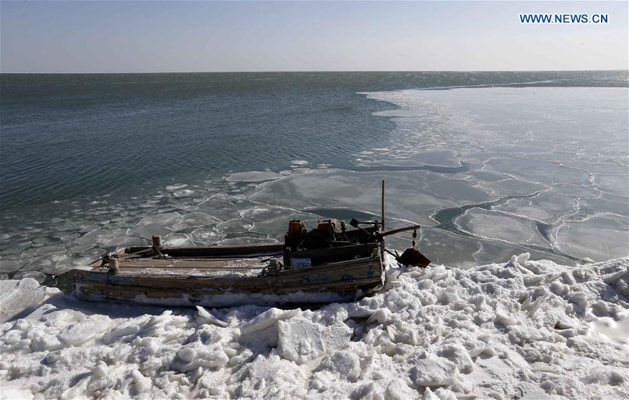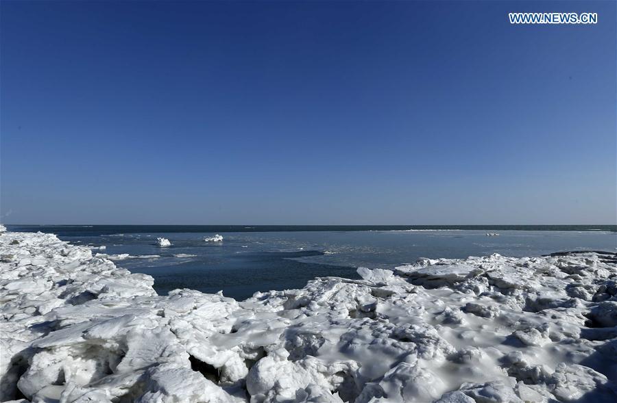 Cold front causes sea ice appear around Bohai Sea coast, N. China(1/6)
