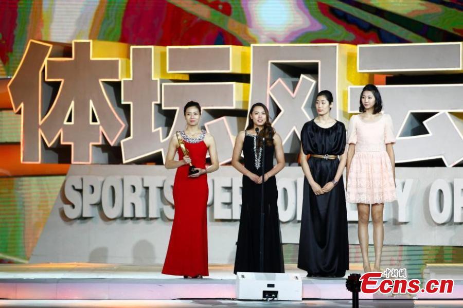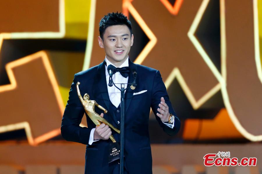 Chinese swimmer Ning Zetao has been awarded as the Best Male Athlete of China's Central Television Sports Personality of 2015 on January 24, 2016.(Photo: China News Service/ Jin Shuo)