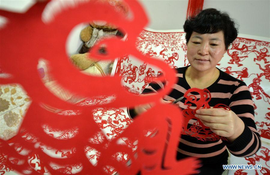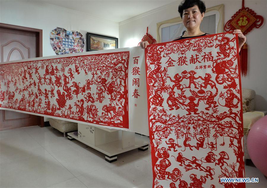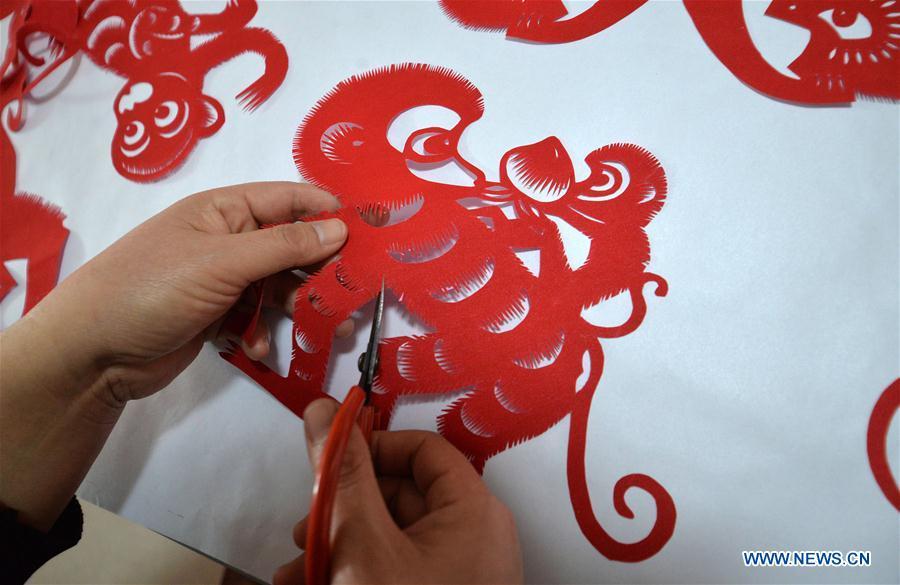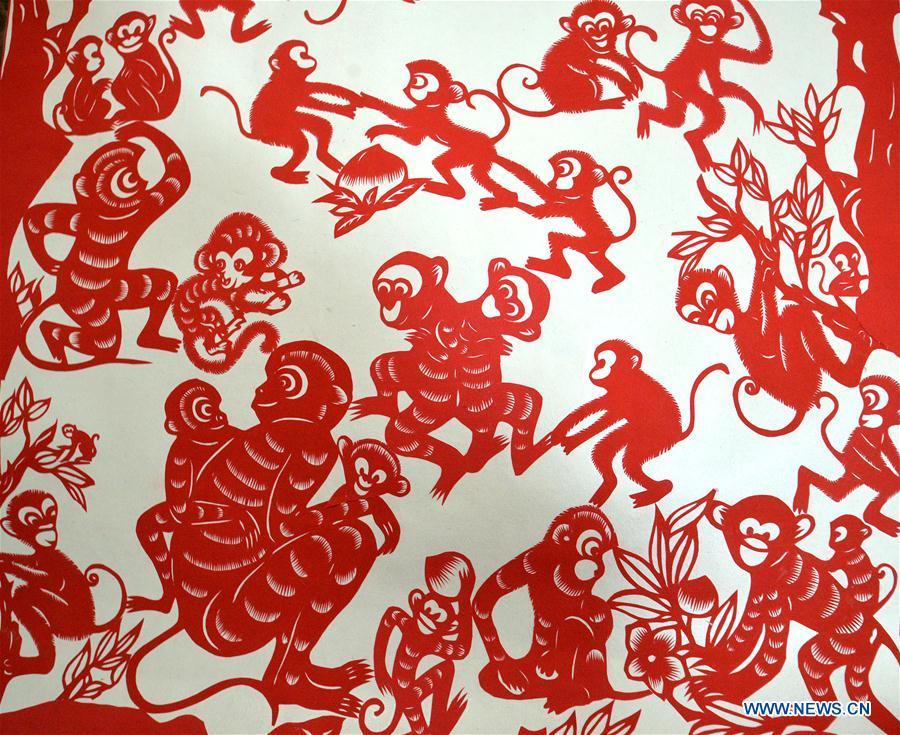 Folk paper-cut artist Feng Shiping creates works celebrating the Year of Monkey in Handan, north China's Hebei Province, Jan. 25, 2016. Feng has created various paper-cut works of monkeys to express her best wishes for the Year of Monkey. The Chinese lunar calendar assigns an animal symbol to each year in a 12-year cycle. According to the zodiac, 2016 is the Year of the Monkey. (Photo: Xinhua/Hao Qunying)