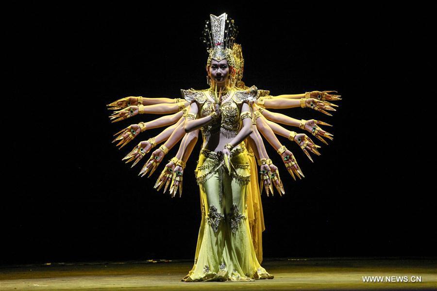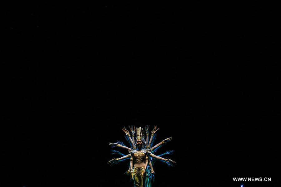Dancers from China Disabled People's Performing Art Troupe perform during the show "My Dream" at the Rios Reyna Hall of the Teresa Carreno Theater in Caracas, Venezuela, on Jan. 29, 2016. China Disabled People's Performing Art Troupe performed the show "My Dream" in Caracas to celebrate the coming Chinese Spring Festival. (Photo: Xinhua/Boris Vergara)