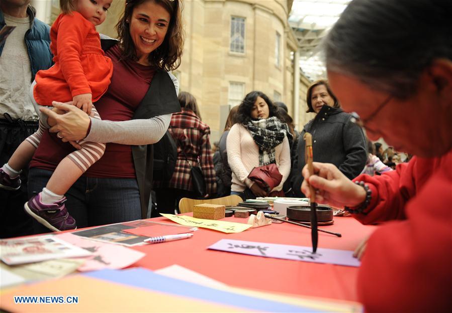 A boy shows his artwork, a mud monkey, as he attends a Family Day event to celebrate upcoming Chinese Lunar New Year at Smithsonian American Art Museum in Washington D.C., the United States, Jan. 30, 2016. (Xinhua/Jiao Min)