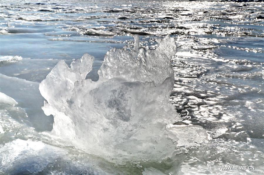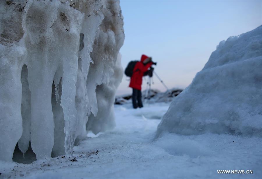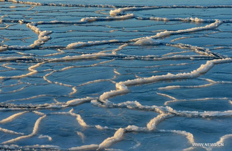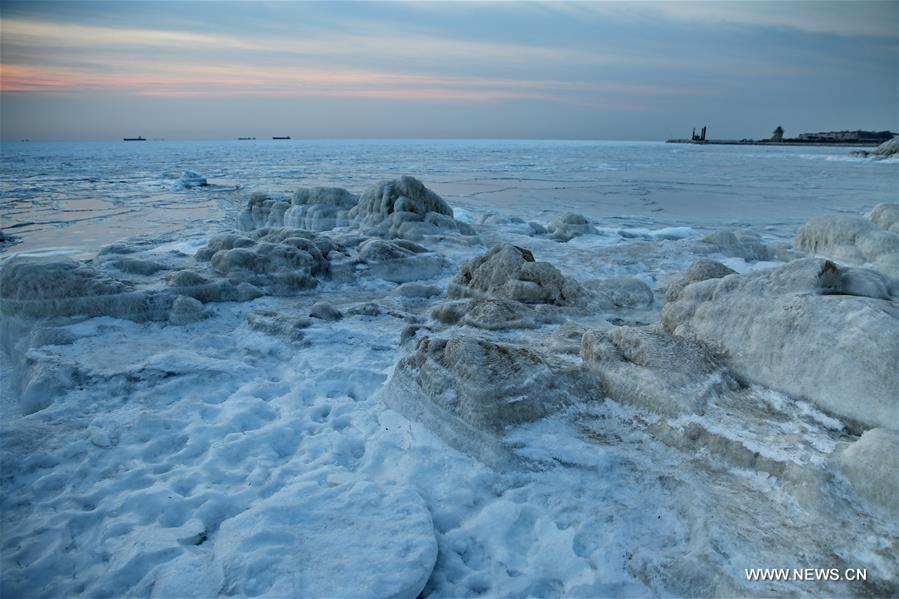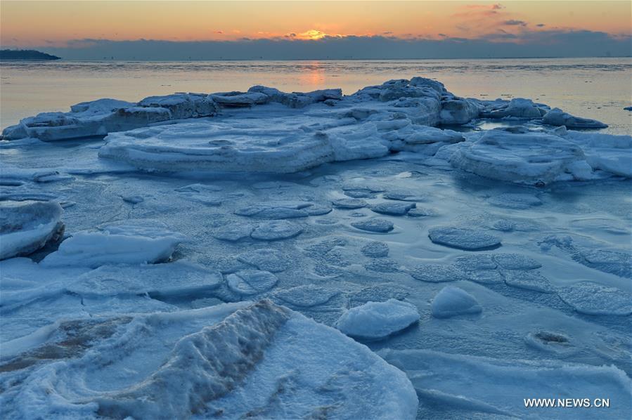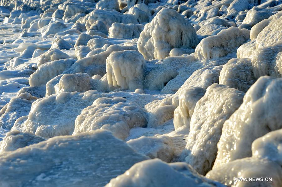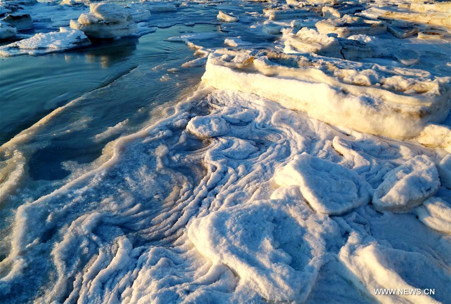 Photo taken on Jan. 31, 2016 shows the sea ice at the seaside in Qinhuangdao, north China's Hebei Province. Due to a strong cold front, sea ice appeared along the seaside at Bohai Sea coast in Qinhuangdao. (Xinhua/Yang Shiyao)