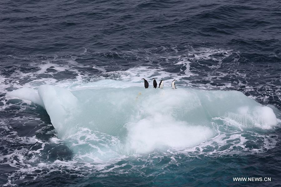 Photo taken from Chinese icebreaker "Xuelong", meaning Snow Dragon, shows four penguins standing on an iceberg near the Antarctic Peninsula, on Dec. 28, 2015. (Photo: Xinhua/Zhu Jichai)