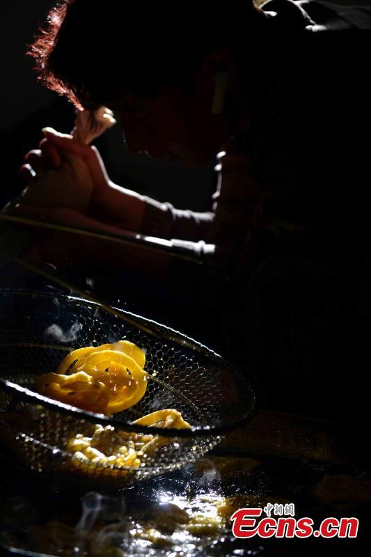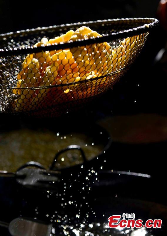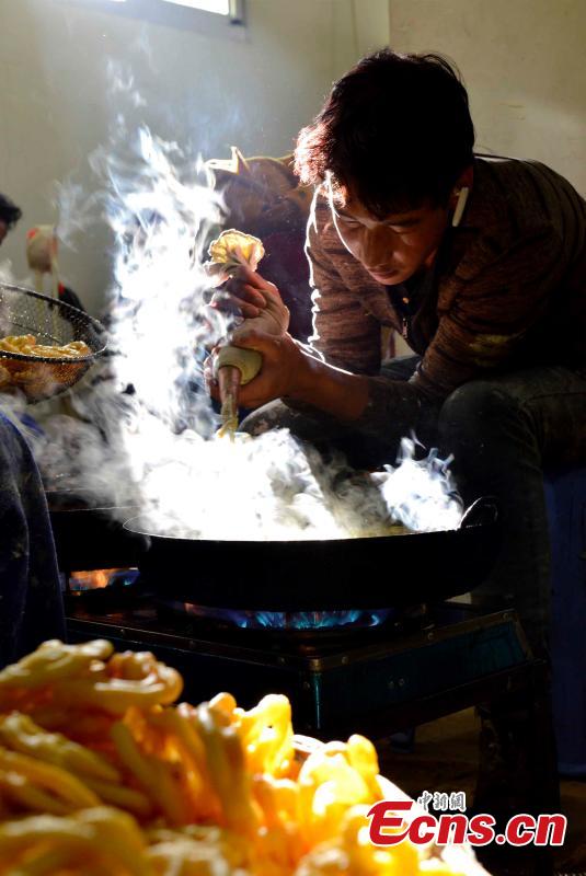 Traditional Tibetan food “Kasai” is prepared for the upcoming Tibetan New Year, or “Losar”, in Lhasa City, the capital of Southwest China’s Tibet Autonomous Region, Feb. 1, 2016. People of the Tibetan ethnic group will embrace the "Year of the Fire Monkey ". (Photo: China News Service/Li Lin)