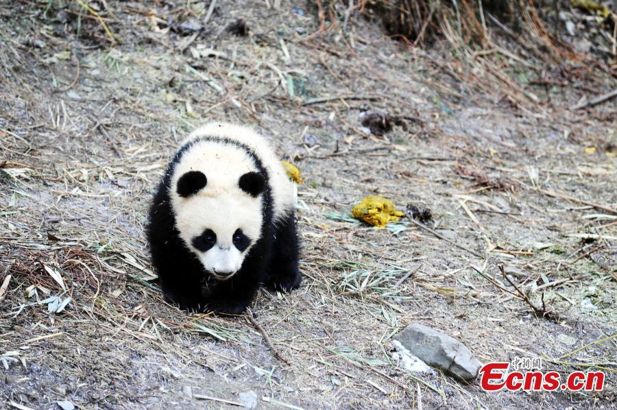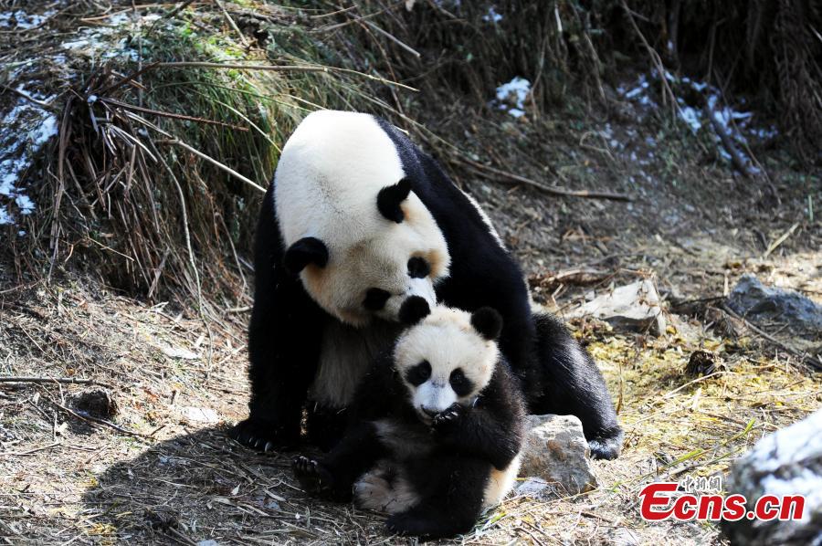 Giant pandas play at the Hetaoping base of the China Conservation and Research Center for the Giant Panda at the Wolong Nature Reserve in Southwest China’s Sichuan Province. Three panda cubs born in 2015 will be trained at the base before returning to the wild. (Photo: China News Service/Qiu Yu)