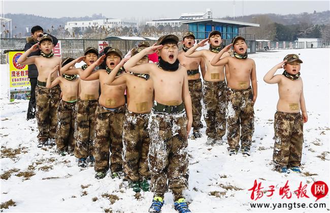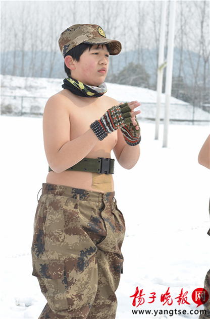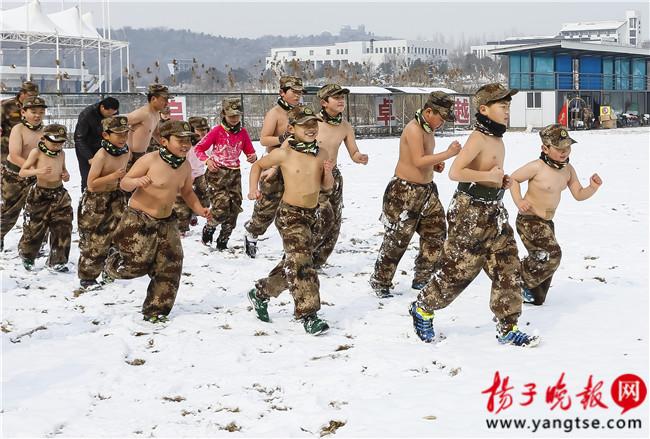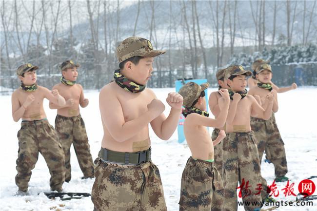 Children undergo training on a snow-covered playground in a winter camp in Nanjing City, the capital of East China’s Jiangsu Province, Feb. 1, 2016. Fourteen children from several cities, including three girls and the youngest member at three years old, attended the activity in chilly weather. They had support from their parents and were supervised by He Liesheng, who was christened “Eagle Dad” for his tough parenting, including forcing his son to run in snow dressed only in underwear. (Photo/yangtse.com)