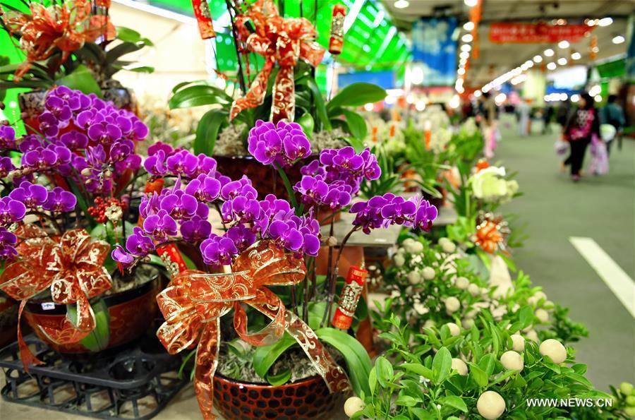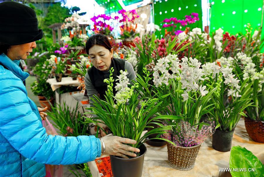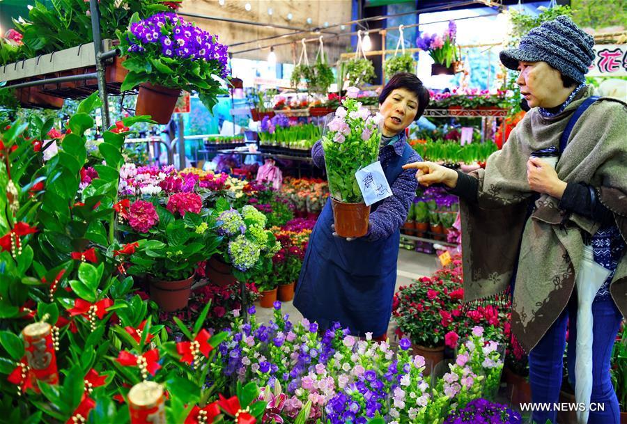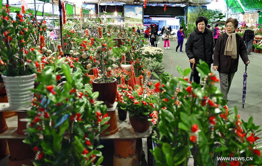 People buy flowers at a market in Taipei, southeast China's Taiwan, Feb. 2, 2016, to greet the traditional lunar New Year to start from Feb. 8 this year. (Photo: Xinhua/Zhang Guojun)