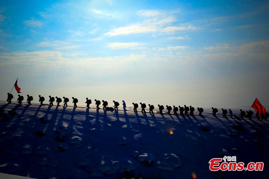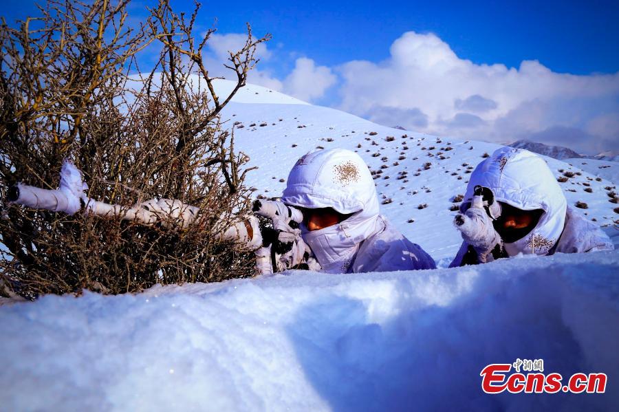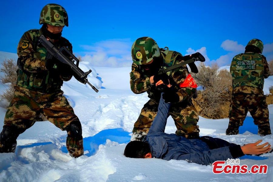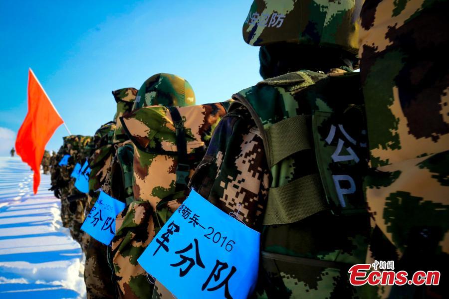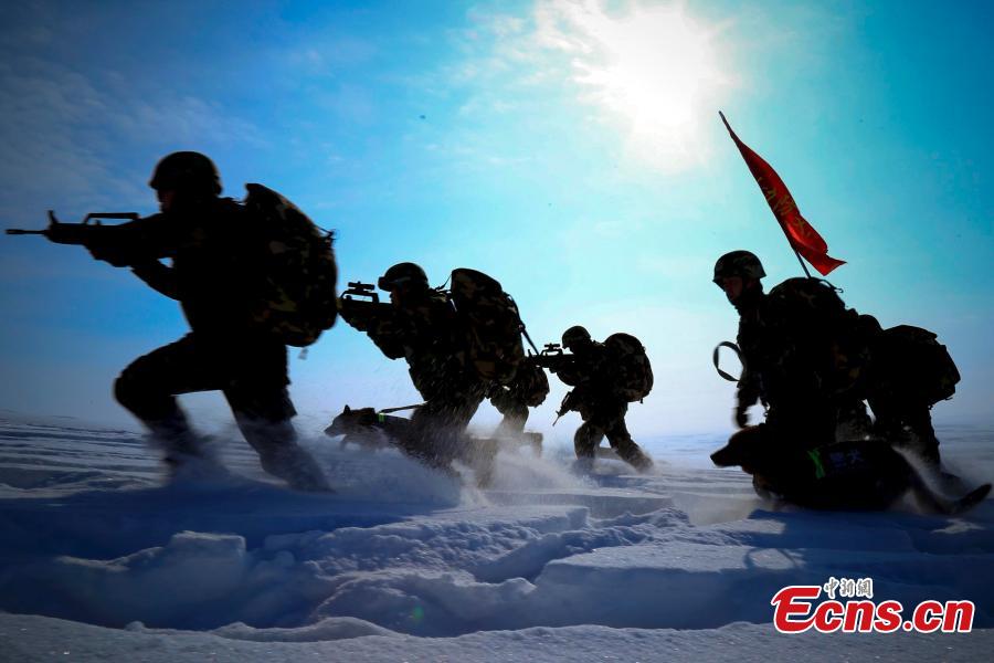 Chinese border soldiers undergo training amid temperatures at minus 20 degrees centigrade in Bortala Mongol Autonomous Prefecture, Northwest China’s Xinjiang Uygur Autonomous Region, Feb. 3, 2016. The training aimed to enhance emergency preparedness ahead of the Spring Festival, China’s Lunar New Year. (Photo: China News Service/Zhang Jia)
