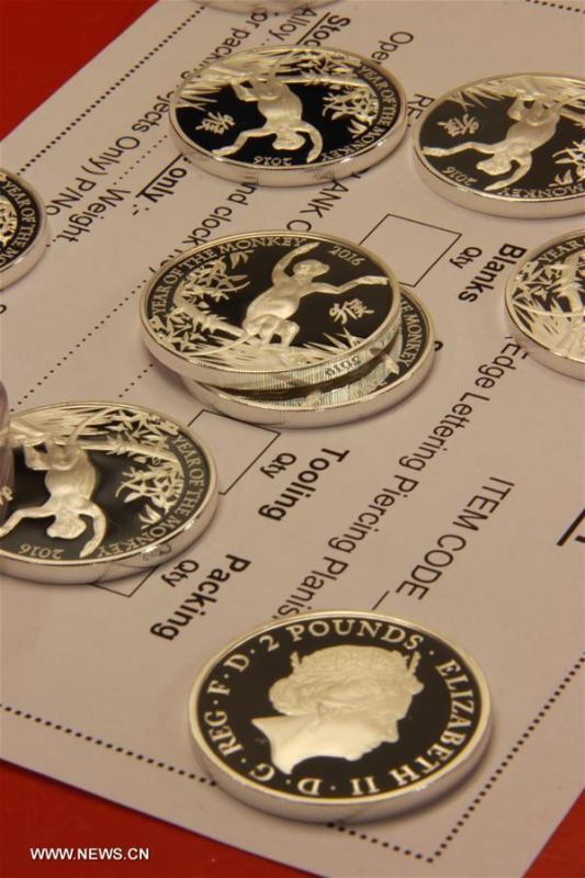 A staff member of the Royal Mint checks a coin of lunar Year of the Monkey at a workshop in Llantrisant, Britain, Feb. 1, 2016. The Royal Mint on Friday released its latest collection of fine gold and silver coins in celebration of the Chinese lunar Year of the Monkey. (Photo: Xinhua/Wu Congsi)