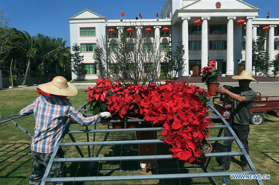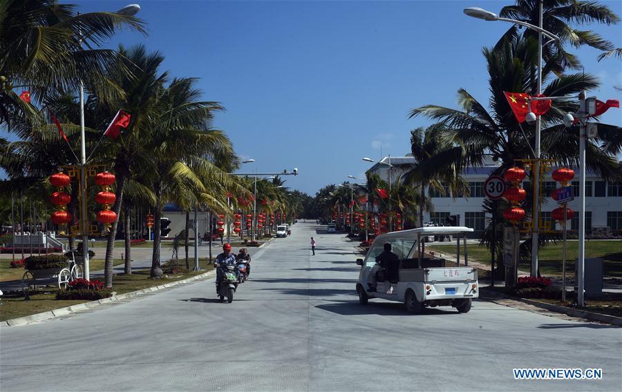 Red lanterns are hung on a street to meet with the upcoming Spring Festival on the Yongxing Island in Sansha City, south China's Hainan Province, Feb. 5, 2016. Chinese people will celebrate the traditional Spring Festival from Feb. 7. (Photo: Xinhua/Yang Guanyu)