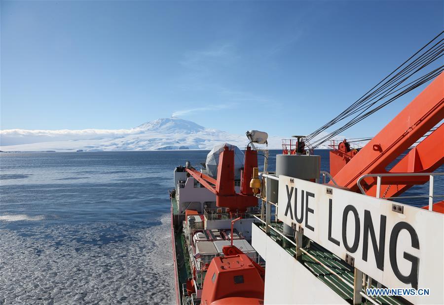 Photo taken on Feb. 6, 2016 shows the Chinese icebreaker "Xuelong", or Snow Dragon, stops on the Ross Sea in Antarctica. The icebreaker reached the Ross Sea for scientific research. (Photo: Xinhua/Zhu Jichai)