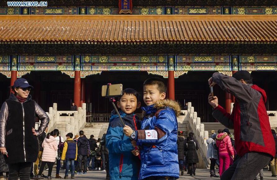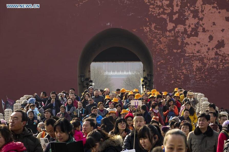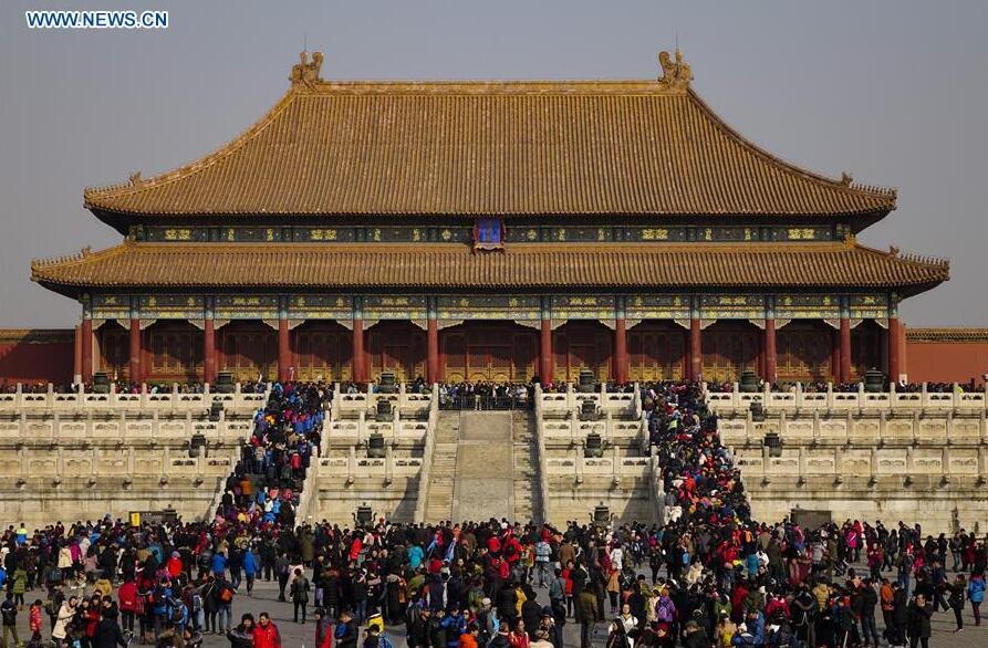 Tourists visit the Palace Museum, also known as the Forbidden City, during the Spring Festival holidays in Beijing, capital of China, Feb. 10, 2016. (Photo: Xinhua/Shen Bohan)