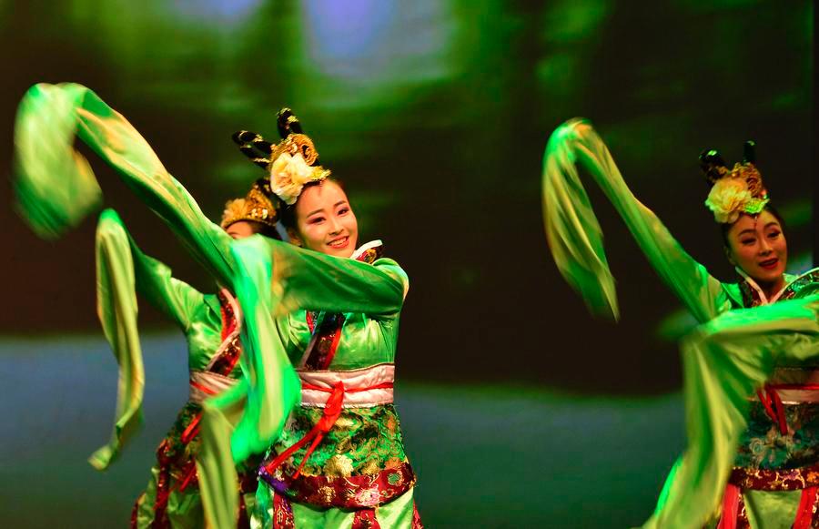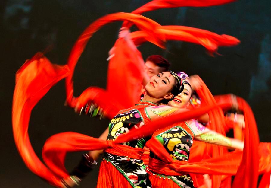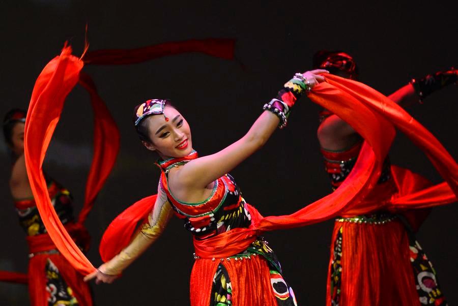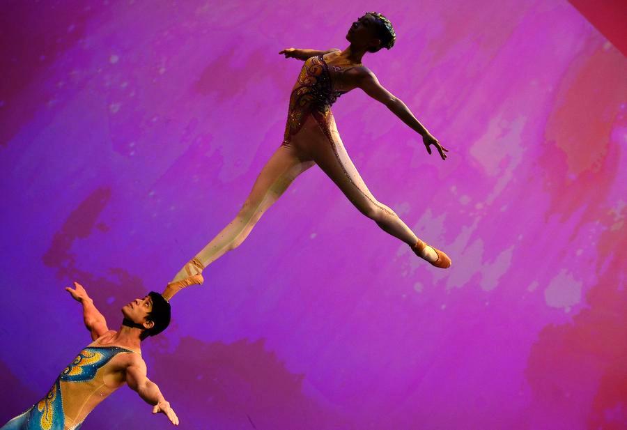 Acrobats perform at the New York 2016 Chinese Lunar New Year Gala held in New York, the United States, Feb. 11, 2016. (Photo/Xinhua)