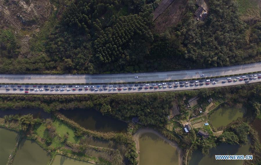 Aerial shots of traffic flow taken at end of Spring Festival holiday(1/6)
