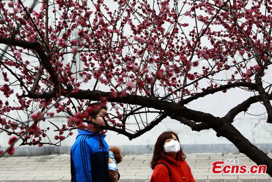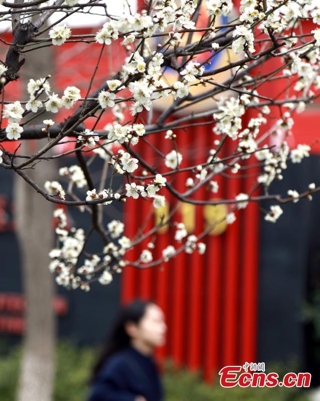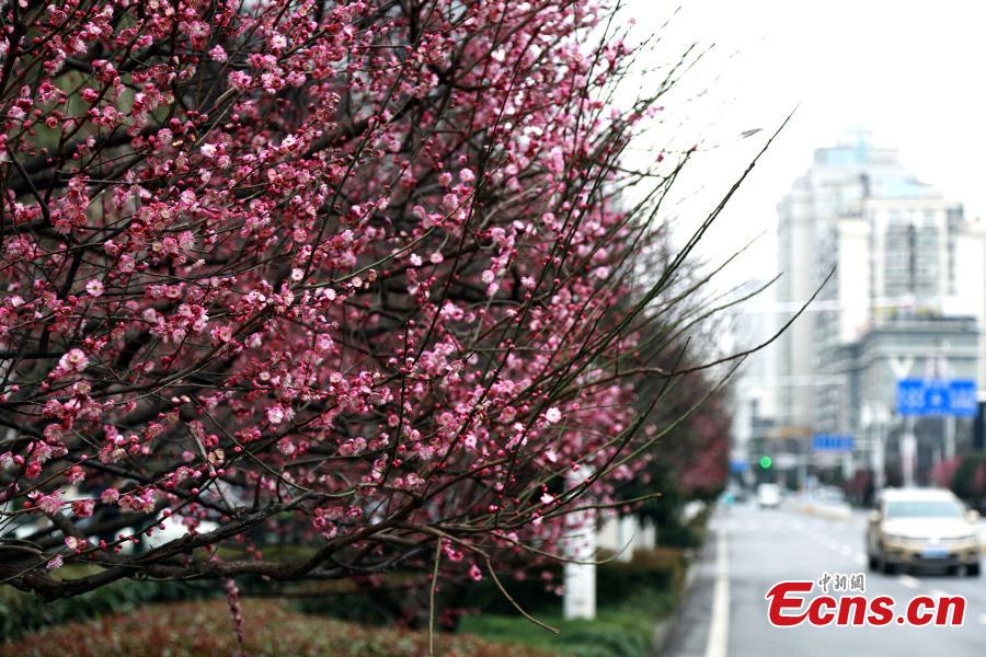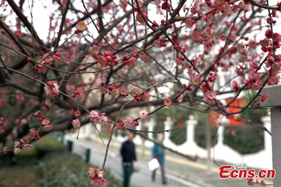 Photo shows plum blossom along the Bailu Street in Wuhan City, the capital of Central China’s Hubei Province, Feb. 13, 2016. The plum blossom is regarded as one of the "four gentlemen" of flowers in Chinese culture. (Photo: China News Service/Zhang Chang)