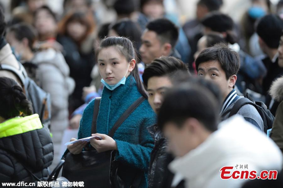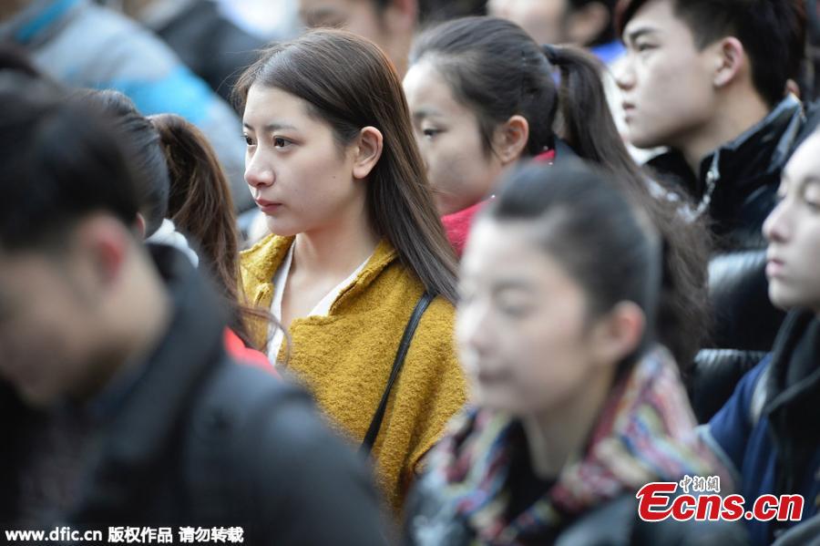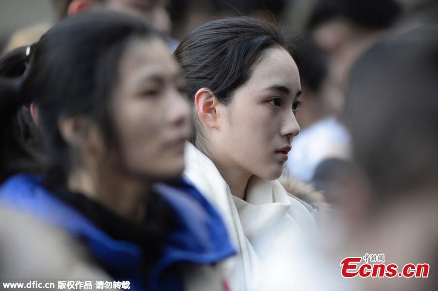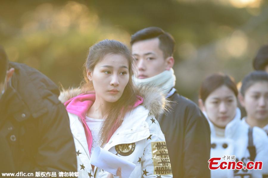 Students prepare to sit entrance exams at the Beijing Film Academy in Beijing, Feb. 15, 2016. The prestigious acting school, regarded by many as the road to fame, plans to offer 10 bachelor’s degree programs and enroll 437 students this year, a decrease of 52 students than last year, but the number of applicants has increased dramatically. (Photo/IC)