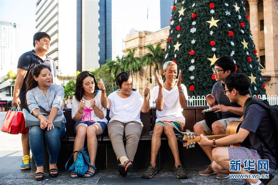Gu Quanping and wife Lv Aiping join other tourists to sing in Australia, Dec. 24, 2015. Gu, who is in his seventies, was diagnosed with advanced gastric cancer in 2013 and later recovered after surgery. Gu and Lv visited Australia last November at the invitation of their son Gu Gu, a photographer, to mark the couple's 50th wedding anniversary. (Photo/Xinhua)