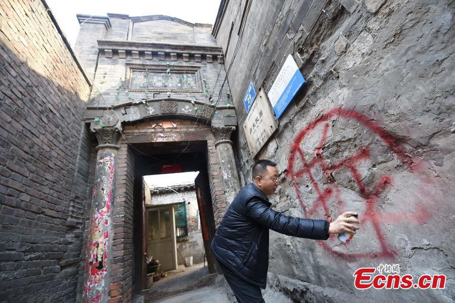 Chai, the Chinese character for “demolish,” is seen painted on a wall of a historical building in Taiyuan City, capital of north China's Shanxi Province, Feb. 16, 2016. Local authorities have planned to launch renovation projects along the Wuyi Road in Taiyuan and some buildings with a history of nearly 100 years are to be demolished for road reconstruction. (Photo: China News Service/Wu Junjie)