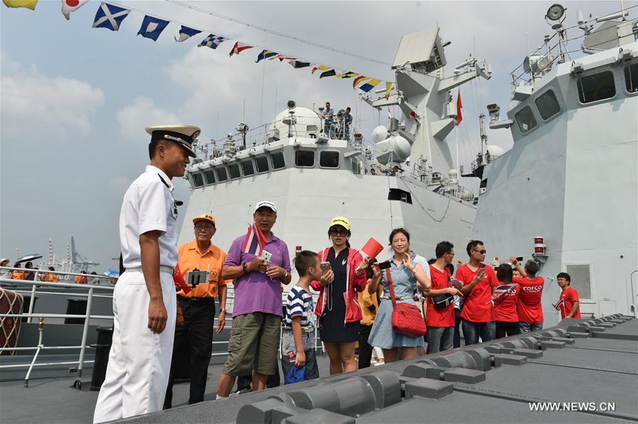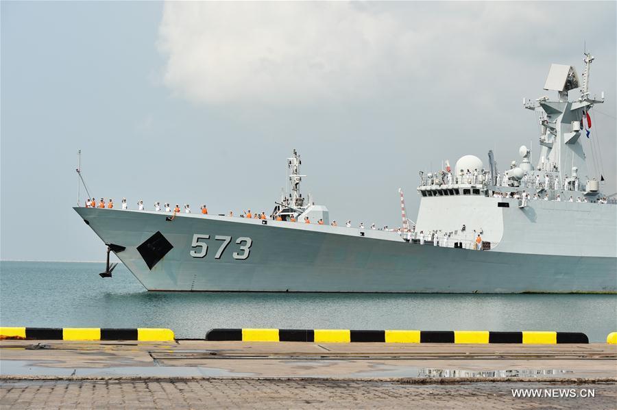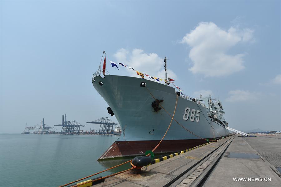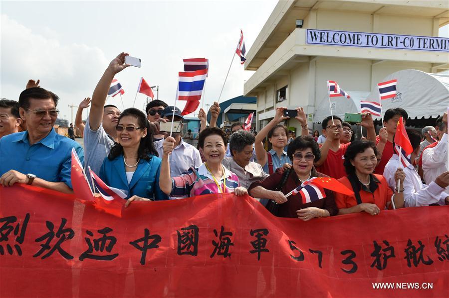 Chinese comprehensive supply ship Qinghaihu is seen at Laem Chabang Port, Thailand, Feb. 17, 2016. Three Chinese naval ships, comprising the guided-missile frigates Liuzhou, Sanya and the comprehensive supply ship Qinghaihu, Wednesday arrived at Laem Chabang Port, Thailand, for a five-day goodwill visit. (Xinhua/Li Mangmang)