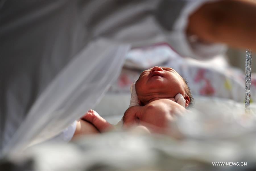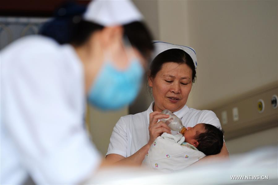 Li Zuyuan, a maternity nurse, takes care of a newborn at the Gansu Provincial Maternity and Child-care Hospital in Lanzhou, capital of northwest China's Gansu Province, Feb. 17, 2016. The hospital saw baby boom at the beginning of the Chinese Lunar New Year, with 352 babies born from Feb. 8 to 15. (Photo: Xinhua/Chen Bin)