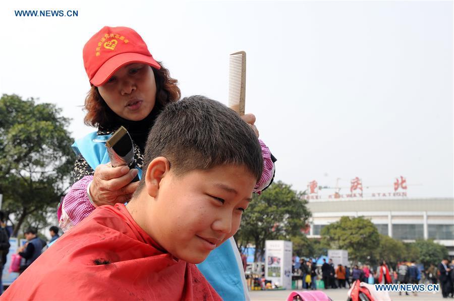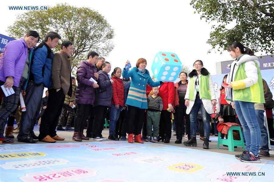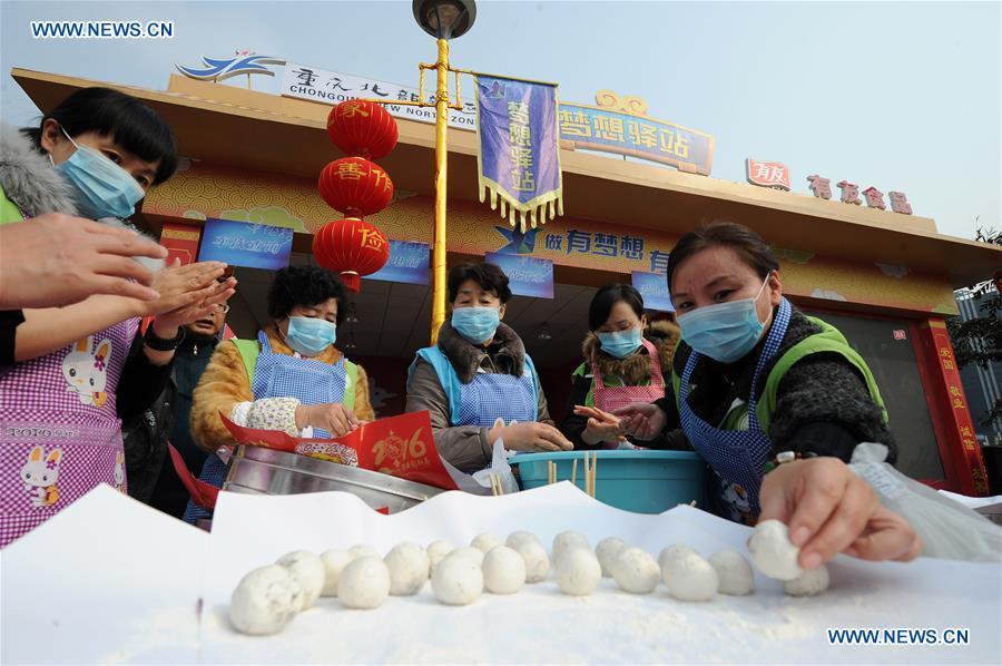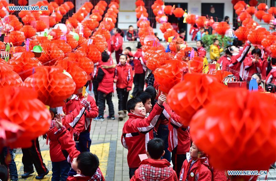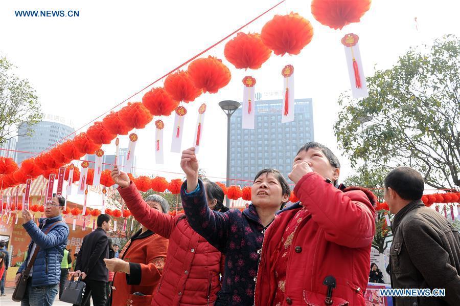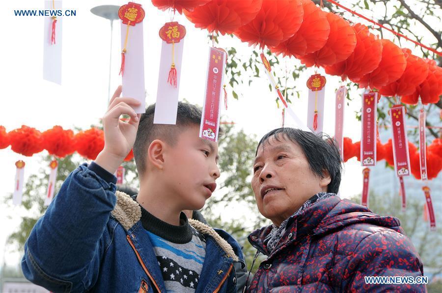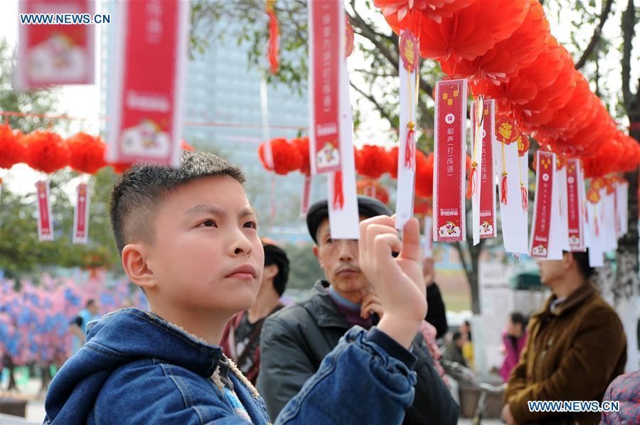 Passengers guess lantern riddles during a "dream post" themed activity held for the upcoming lantern festival at a railway station in Chongqing, southwest China, Feb. 19, 2016. (Xinhua/Tang Yi)