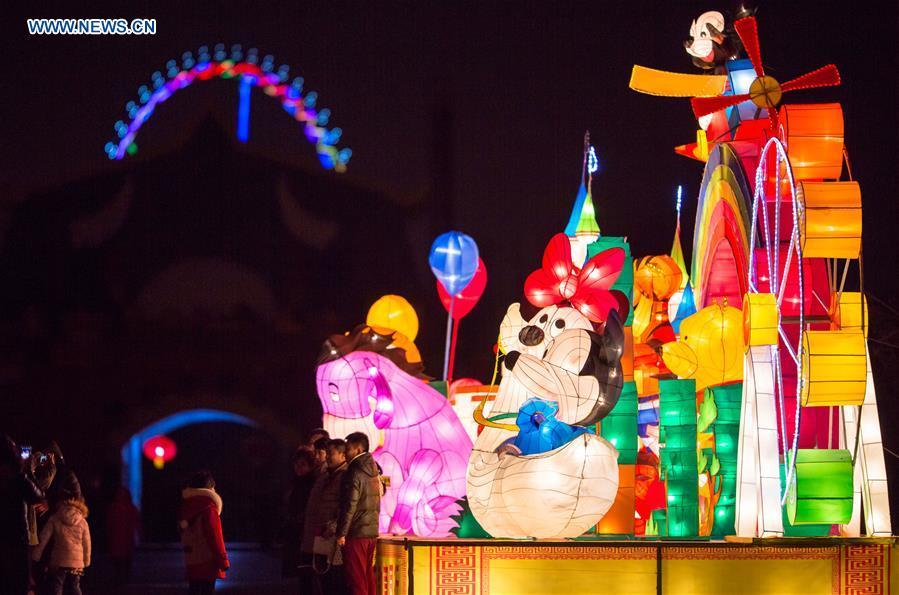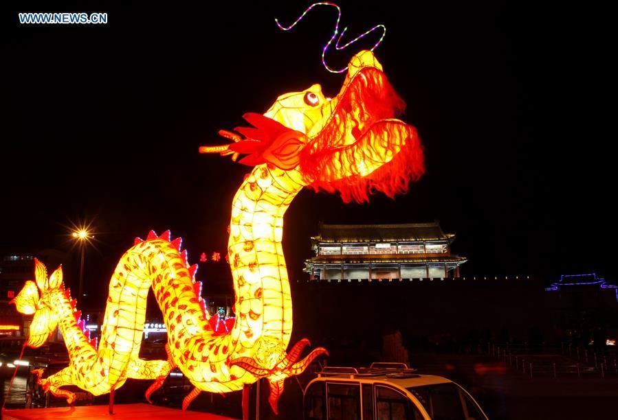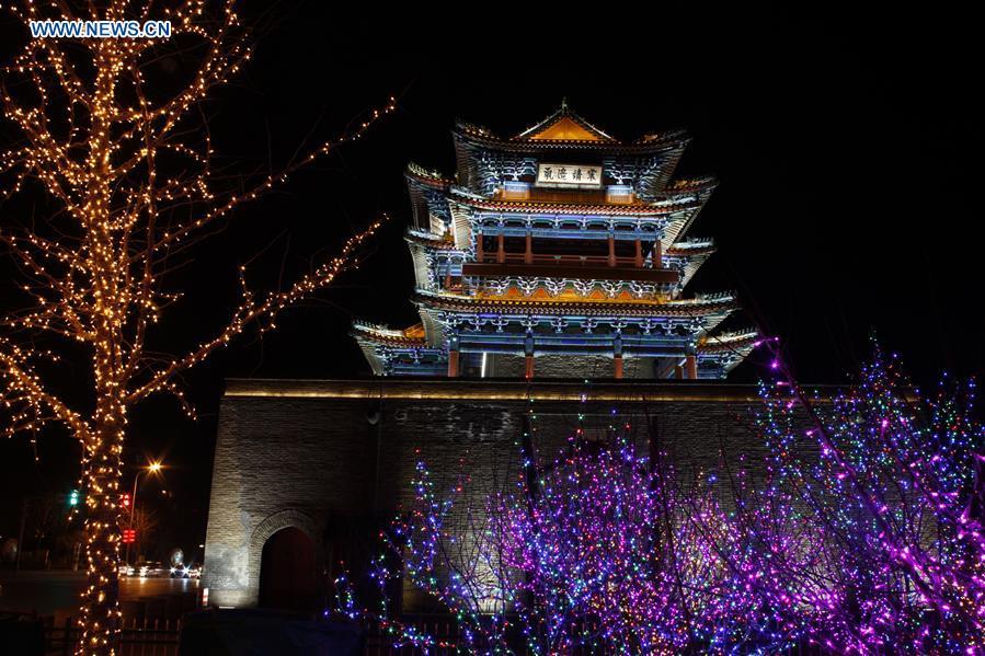 Colorful lights are decorated to greet the upcoming Lantern Festival which will fall on Feb. 22, in the Xuanhua District of Zhangjiakou City, north China's Hebei Province, Feb. 21, 2016. (Photo: Xinhua/Yang Shiyao)